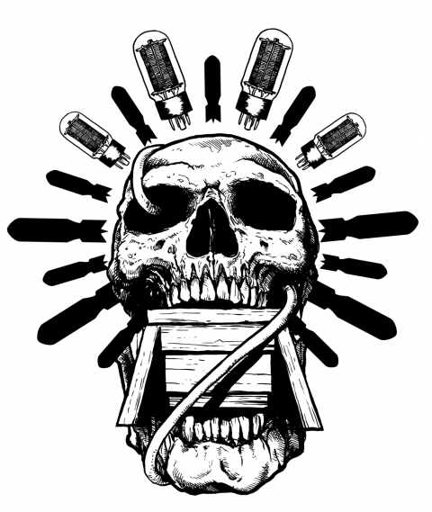 Skull-designet viser et kranium, der gaber om bunkerens indgang. Dette er omkranset af en blanding af bomber og radiorør (sådan nogle der sidder i rørforstærkere). Ud over det er der også et kabel, der slanger sig rundt om kraniet.