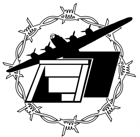 Bomber-designet viser silhouetten af et B-17 Fortress bombefly (U.S. Air Force) bagved bunkerens indgang. Dette er omkranset af pigtråd.