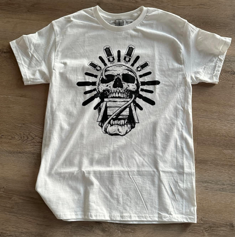 Skull-shirten findes som både hvid shirt med sort tryk og sort shirt med hvidt tryk.